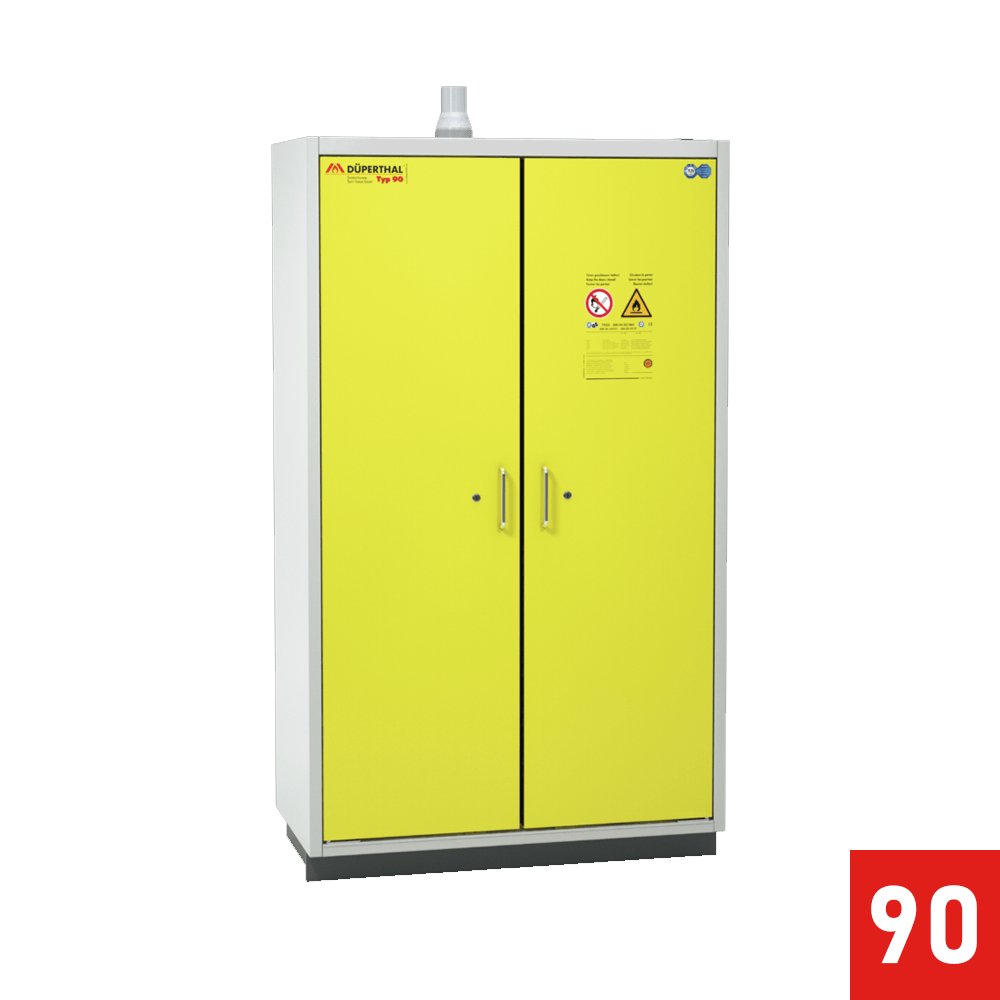 The CLASSIC PRO XL – V3B ensures safe storage of flammable liquids in laboratories and industrial facilities. Its sturdy sheet steel outer carcass, finished in RAL 7035, resists wear and provides lasting durability. The sheet steel doors, coated in RAL 1018, automatically close in a fire while remaining open for convenient access when necessary.