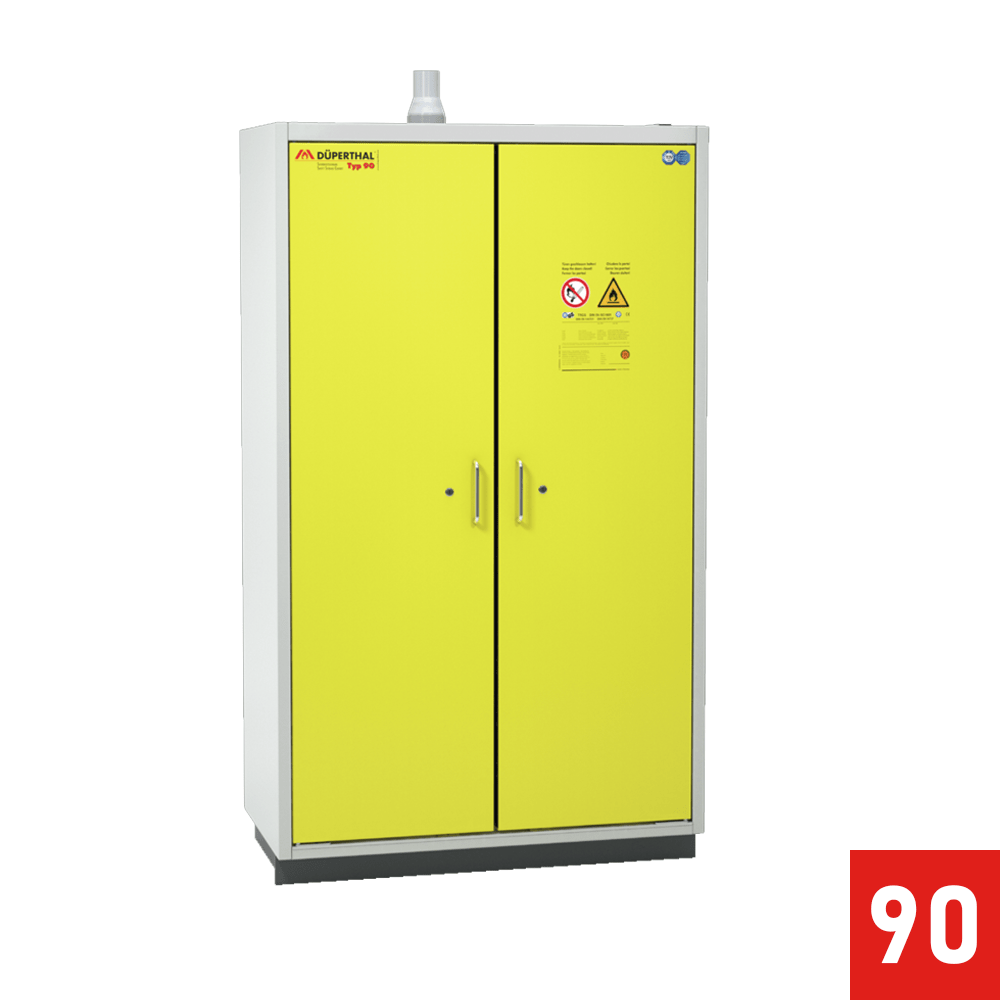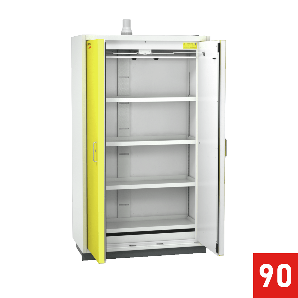 The CLASSIC Standard XL – V1 cabinet provides reliable and secure storage, making it ideal for laboratories and industrial environments. Its sturdy outer carcass and bottom tray, made of sheet steel in RAL 7035, ensure long-lasting durability. The sheet steel door, coated in RAL 1018, closes automatically during a fire while remaining open for convenient access.