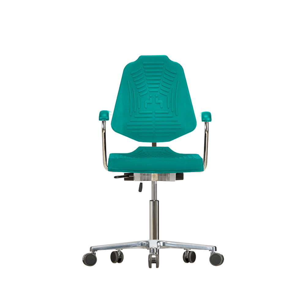 Additionally, the chair is built for both stability and smooth movement. Specifically, the die-cast aluminum five-star base with dual castors helps users glide easily across workspaces. Furthermore, the loaded/unloaded castor brake system enhances safety by ensuring controlled mobility. Ideal for laboratories, workshops, and industrial settings, this chair not only boosts productivity but also offers reliable electrostatic discharge (ESD) protection.