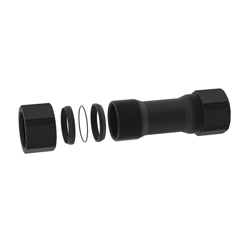 - Two conical sealing rings in PTFE-EX ensuring a tight seal
