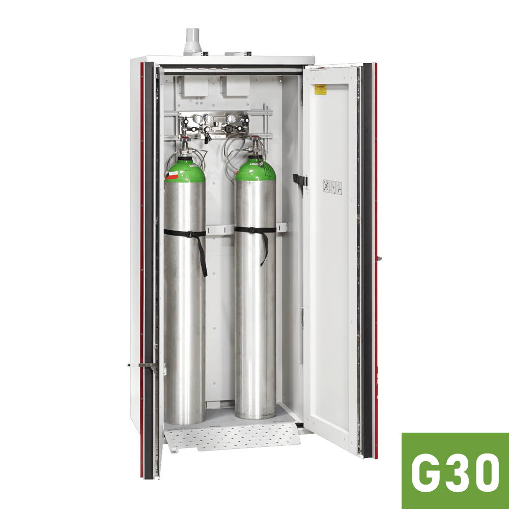 ECO Line – L Cabinet ensures secure and efficient storage. Its outer carcass, made of sheet steel, features a RAL 7035 finish. The doors, also sheet steel, stand out with a bold RAL 3003 coating. Inside, decor panels in RAL 7035 add both durability and a cohesive look.