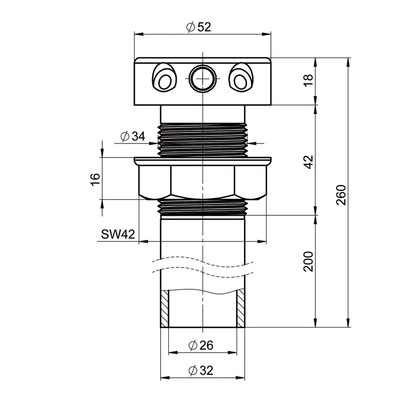 Additionally, its low installation height results from inclined side connections, allowing tubing attachment without bending. The upper side features 4 capillary connections (female thread UNF 1/4”) with fittings for capillaries of O.D. 1.6/2.2/3.2 mm. Furthermore, it includes 2 tube connections (female thread NPT 1/8”) with hose connectors for tubing with I.D. 6.5-8 mm.