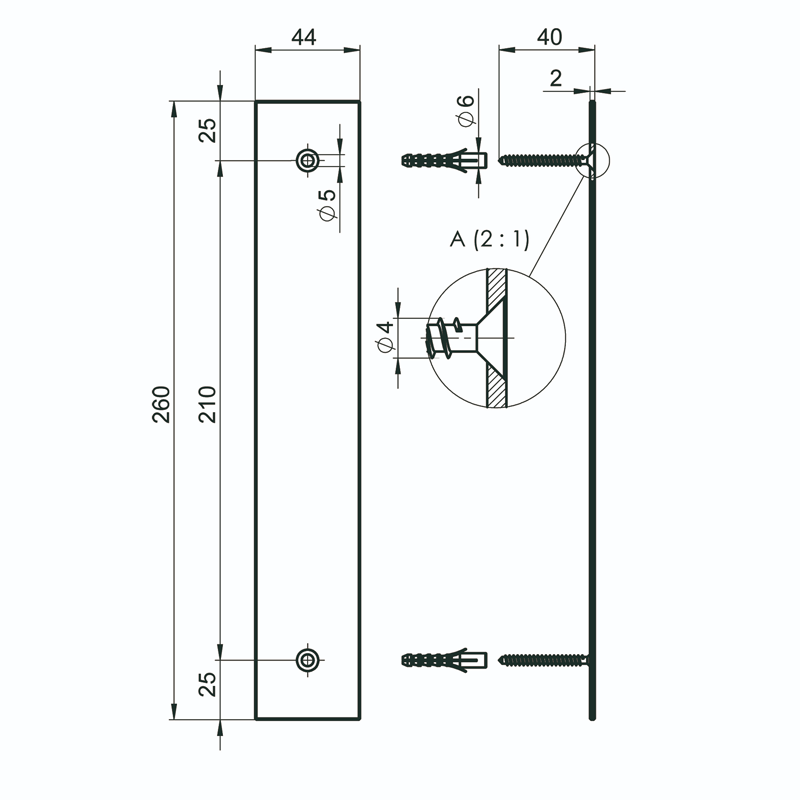 | Fixing surface [(L x W) mm] | 260 x 44 |